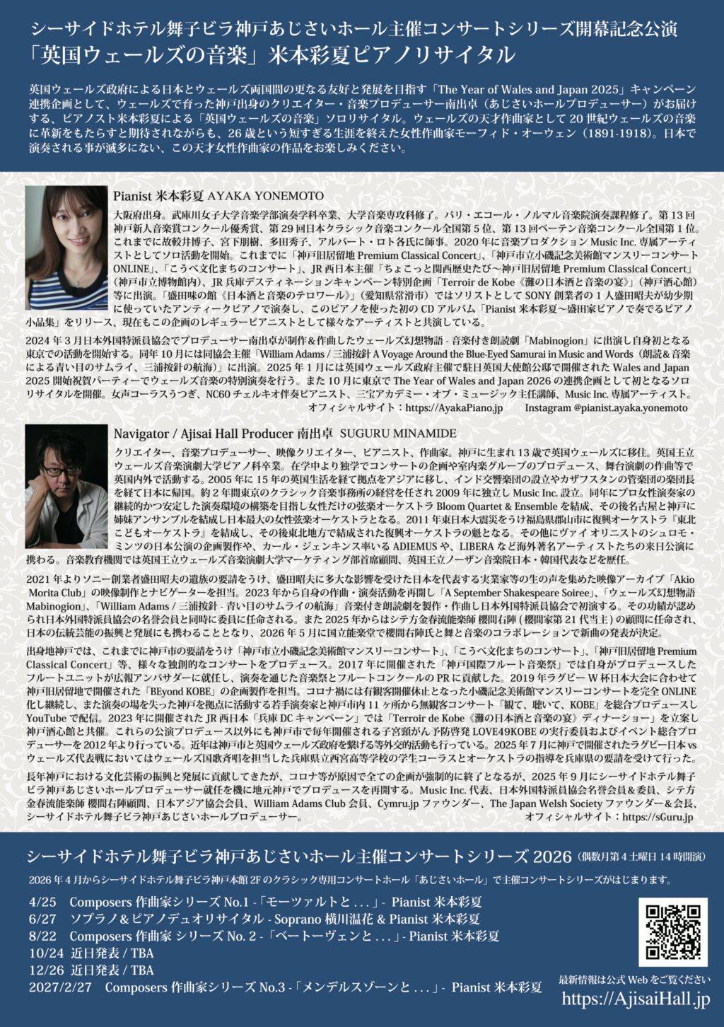 ナビゲーターは、あじさいホールプロデューサー 南出 卓(Suguru Minamide) が務めます。