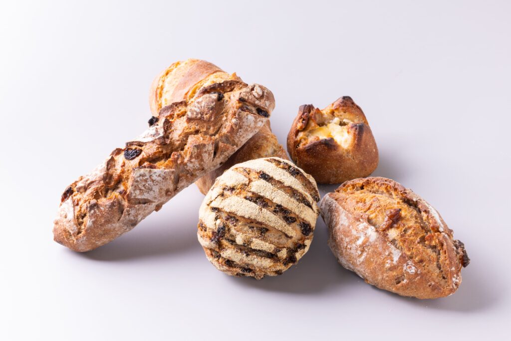 生地には、厳選したレーズンやドライイチジク、プルーン、クルミを贅沢に練り込みました。果実の凝縮された甘みとナッツの食感がアクセントとなり、一度食べたら忘れられない奥深い味わいに仕上げています。