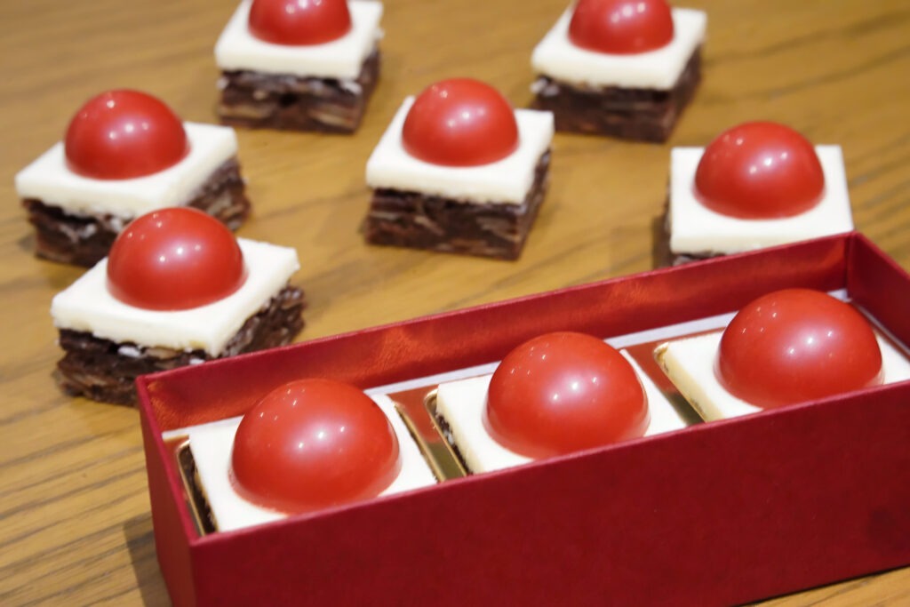 三重奏のショコラ: 鮮やかなルビーチョコレートに、苺の甘酸っぱさとホワイトチョコレートのコクを絶妙なバランスでブレンドしました。